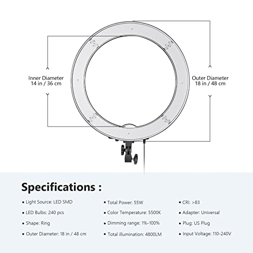 Neewer Kamera Foto SMD LED-Ringlicht für Video, Porträt und Fotografie Beleuchtung, 18 „55W 240PCS LED SMD Ring Licht